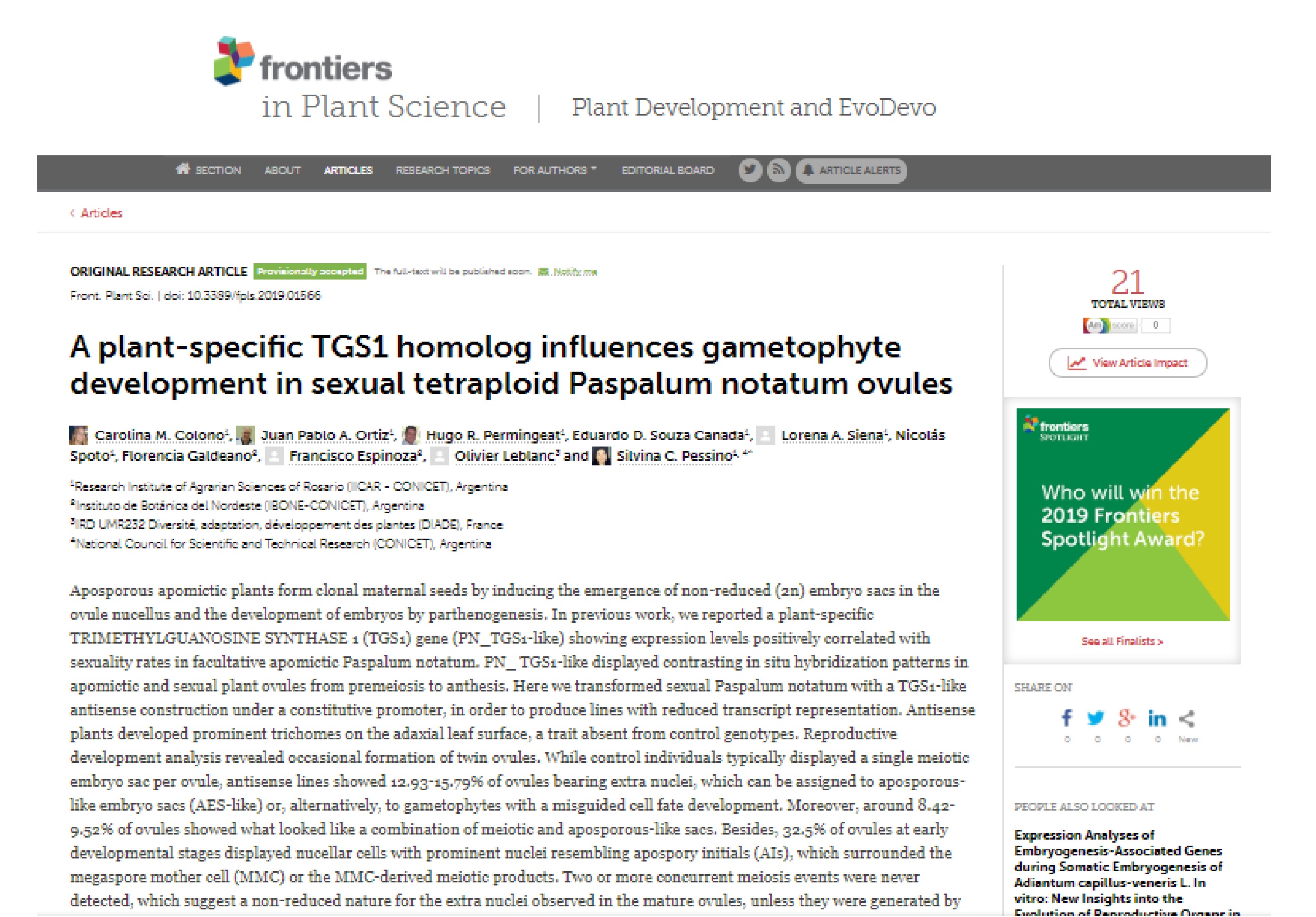 El Grupo de Desarrollo Reproductivo de Plantas (DREP) publicó recientemente el articulo: «Small RNA-seq reveals novel regulatory components for apomixis