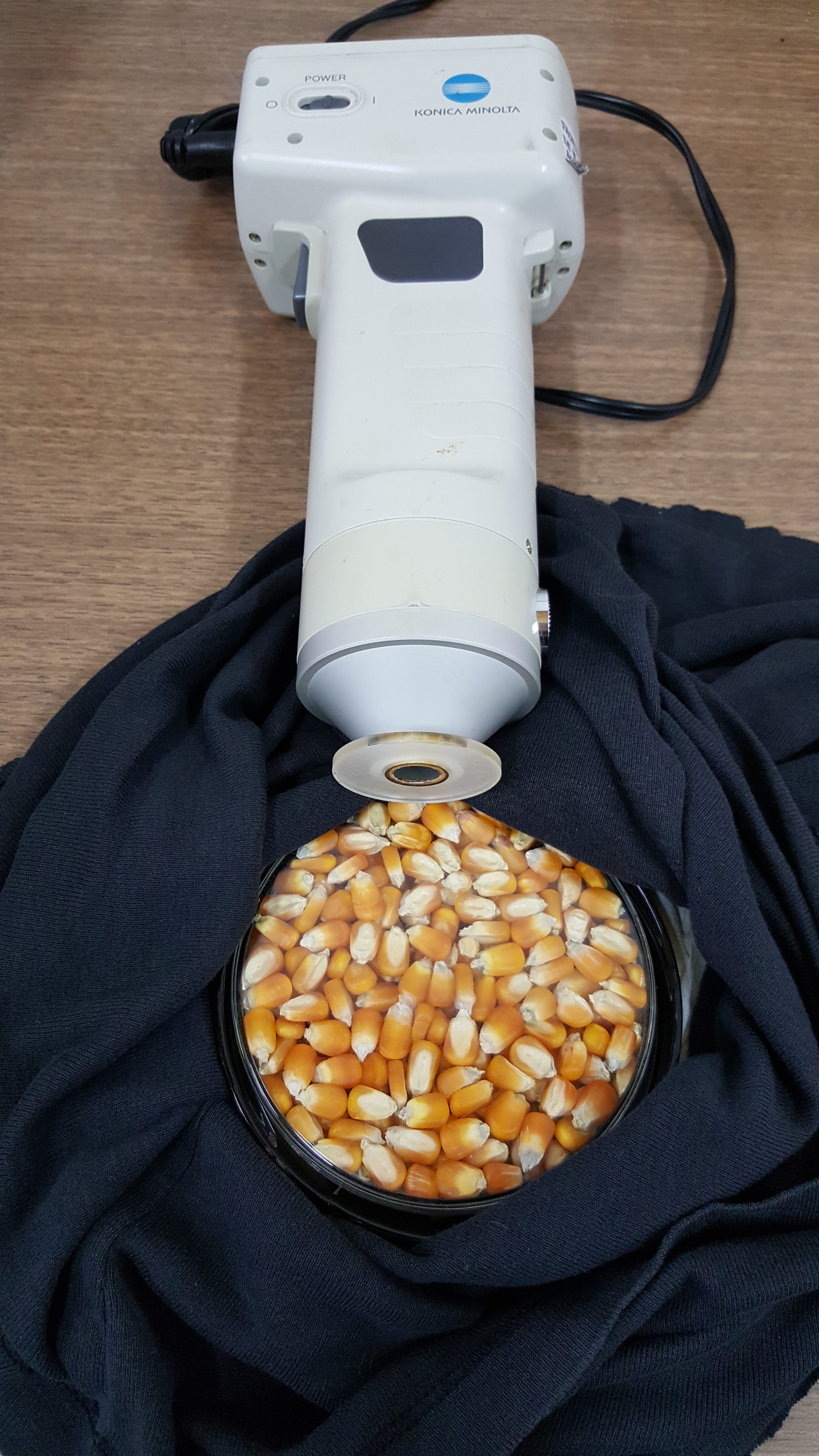 Se sembró en el Campo Experimental Villarino en dos fechas, una en octubre y una en diciembre, un ensayo con 13 genotipos comerciales con un diseño en bloques completos aleatorizados hasta obtener los granos en madurez de cosecha. Entre otros datos, se registró el rendimiento y se caracterizaron los genotipos de acuerdo a los métodos aprobados por el SENASA para la evaluación de la calidad física de los granos de maíz: vitreosidad, test de flotación y peso hectolítrico. Además, se evaluó el tamaño de grano mediante el paso por zaranda de 8mm. Por otra parte, se tomaron muestras de granos de cada uno de estos genotipos, y se analizó el color con un colorímetro digital. Además, en el laboratorio de calidad de alimentos del GIMUCE, se hizo la extracción de carotenoides bajo una luz que evita su oxidación y se determinó la concentración de los mismos. El documento detalla que la percepción del color, está relacionada con la cantidad de luz y el rango del espectro que es reflejado por un objeto hacia el ojo humano.