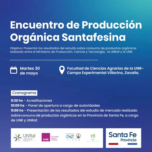 Encuentro de Producción Orgánica SantafesinaPor cravero / 22 mayo, 2023 El encuentro se realizará el 30 de mayo en la facultad de Ciencias Agrarias de la UNR.