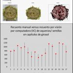 En este cultivo se comercializan semillas híbridas y se fiscalizan unas 6.000 toneladas al año (Fuente INASE). Predecir el rendimiento en los lotes, es clave para el negocio de las empresas semilleras y para los productores. Sin embargo, estimar el número de semillas en cada capítulo de girasol no es fácil. Se hace manualmente y con poca precisión. Nosotros hemos desarrollado una tecnología, GiRos, que usa inteligencia artificial y visión por computadora a partir de imágenes para contar las semillas automáticamente y con gran exactitud (ver esquema).